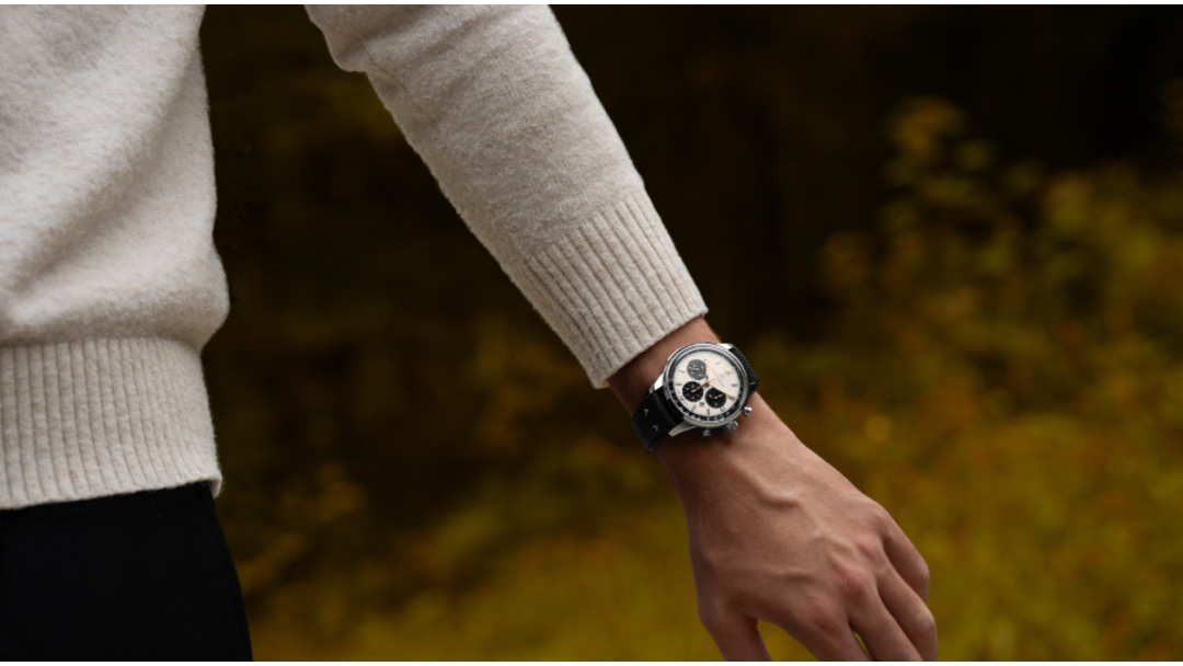 @norqain presents the latest addition to the Freedom collection – the Freedom 60 Chrono Off White, a vintage-inspired chronograph watch perfect for autumn days. Its cream-colored, domed dial captures the season's splendor; a white tachymeter scale on a black outer ring ensures clear legibility, while diamond-cut, faceted hands with rose gold plating add warmth and clarity to every glance. Limited to 300 pieces, this timepiece combines timeless character with modern craftsmanship: a mechanical automatic chronograph with a 62-hour power reserve and an open case back that reveals the movement. Featuring the customizable NORQAIN Plate, which you can have engraved with your own message, this limited edition is for those who collect memories – season after season.